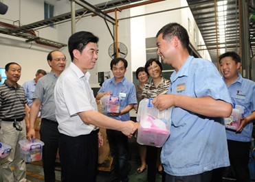 7月12日下午,苏州市总工会主席温祥华等市总领导,在创元投资纪委书记郁天、公司控股子公司苏州轴承总经理沈洪洋、党委书记傅勤衡的陪同下,来到公司控股子公司苏州轴承生产车间现场,向在高温下坚守生产岗位的一线员工表示慰问,叮嘱员工们在保质保量的同时,一定要注意劳逸结合并送上了夏季防暑清凉用品。在与公司领导交谈中,温主席一行详细询问了苏州轴承防暑降温和安全生产工作,他要求苏州轴承一定要把防暑降温和安全生产措施落到实处,切实保障好夏季高温一线员工的生产安全和身体健康。