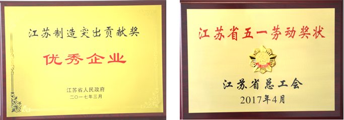 近日,公司全资子公司江苏苏净摘得由江苏省人民政府颁发的“江苏制造突出贡献奖优秀企业”和江苏省总工会颁发的“江苏省五一劳动奖状”奖牌。